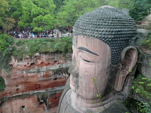 樂山大佛位於三江匯流處(岷江、青衣江、大渡河)....標高74公尺...大約是24層樓高...目前歷史已經有1300多年歷史...照片都只有半身照....因為太高了..如果要拍到完整全身照..必需要坐船到三江匯流的江中往回拍才可以...當天人也爆多..連要下到大佛腳底的樓梯都塞滿了....