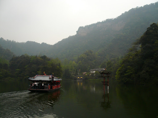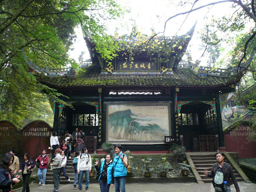 第二天下午...前往被稱為道教發源地的"青城山"(我也不知道到底是不是...這個又不可考)..."青城山"跟"都江堰"算是位於同一個旅遊路線上啦..因為都在附近而已...整個"青城山"還蠻幽靜的...園區內有上山纜車可以坐...纜車後半段是接近60斜度的山峰(還好不是用走的..要不然光看到腿就軟了)...坐到一半還倒車勒....